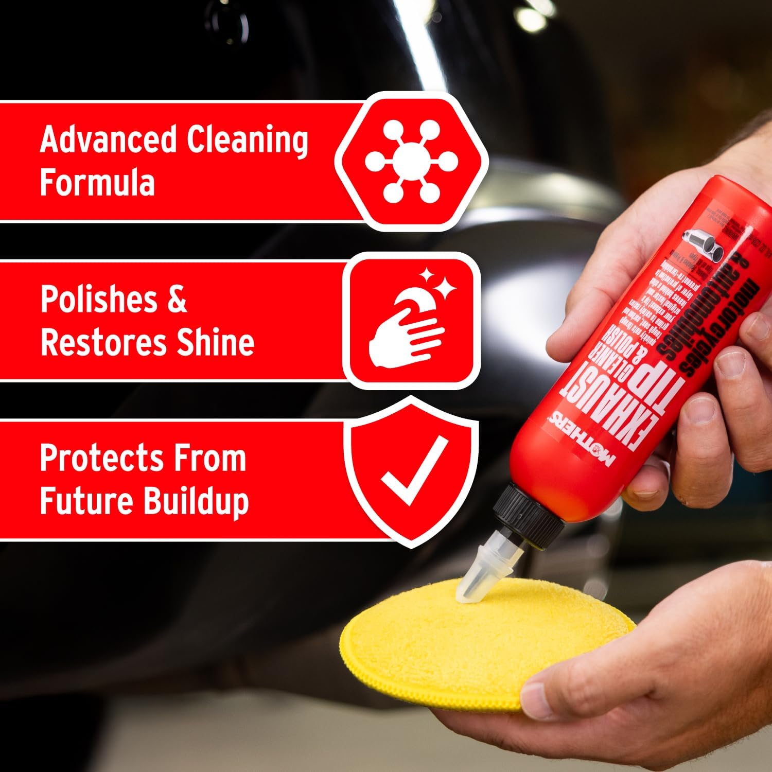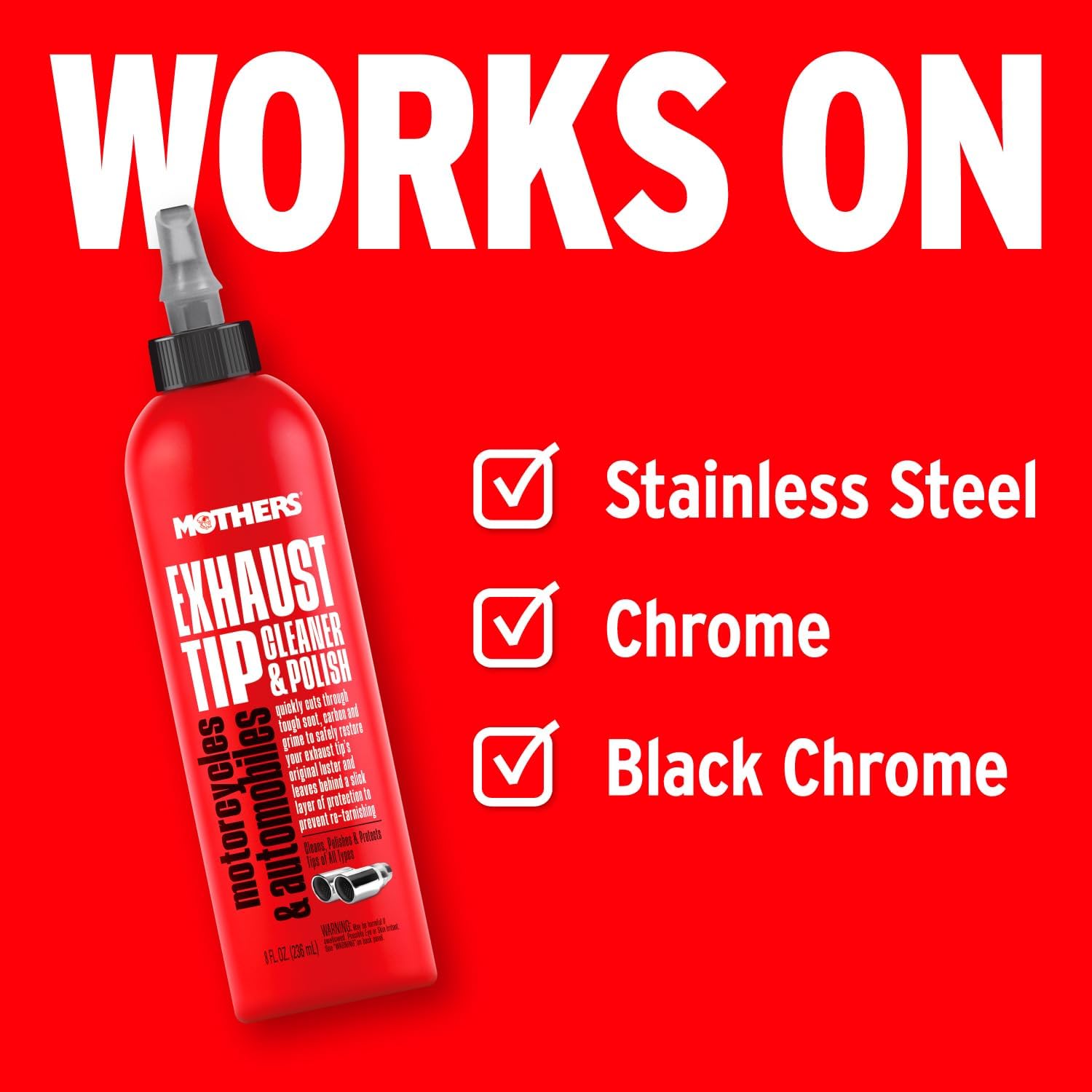 All-In-One Cleaner, Polish & Protectant: This premium Mothers formula cleans, polishes, and protects in a single step, making it ideal for fast maintenance or deep restoration on even the most neglected exhaust tips.