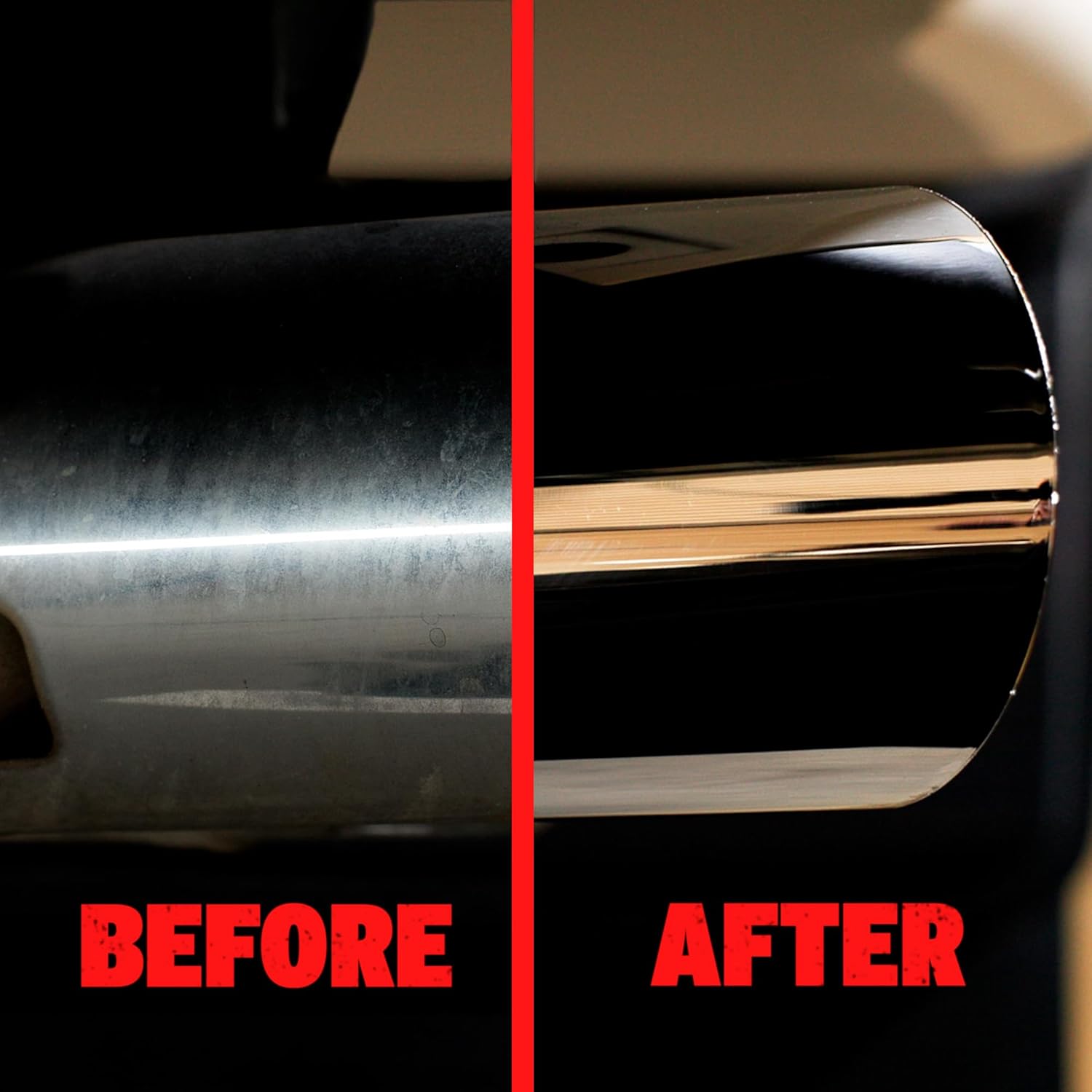 Gentle Enough for Regular Use: Effective yet non-abrasive formula delivers professional-grade results while remaining safe for routine cleaning, ensuring your exhaust tips maintain consistent shine and clarity.