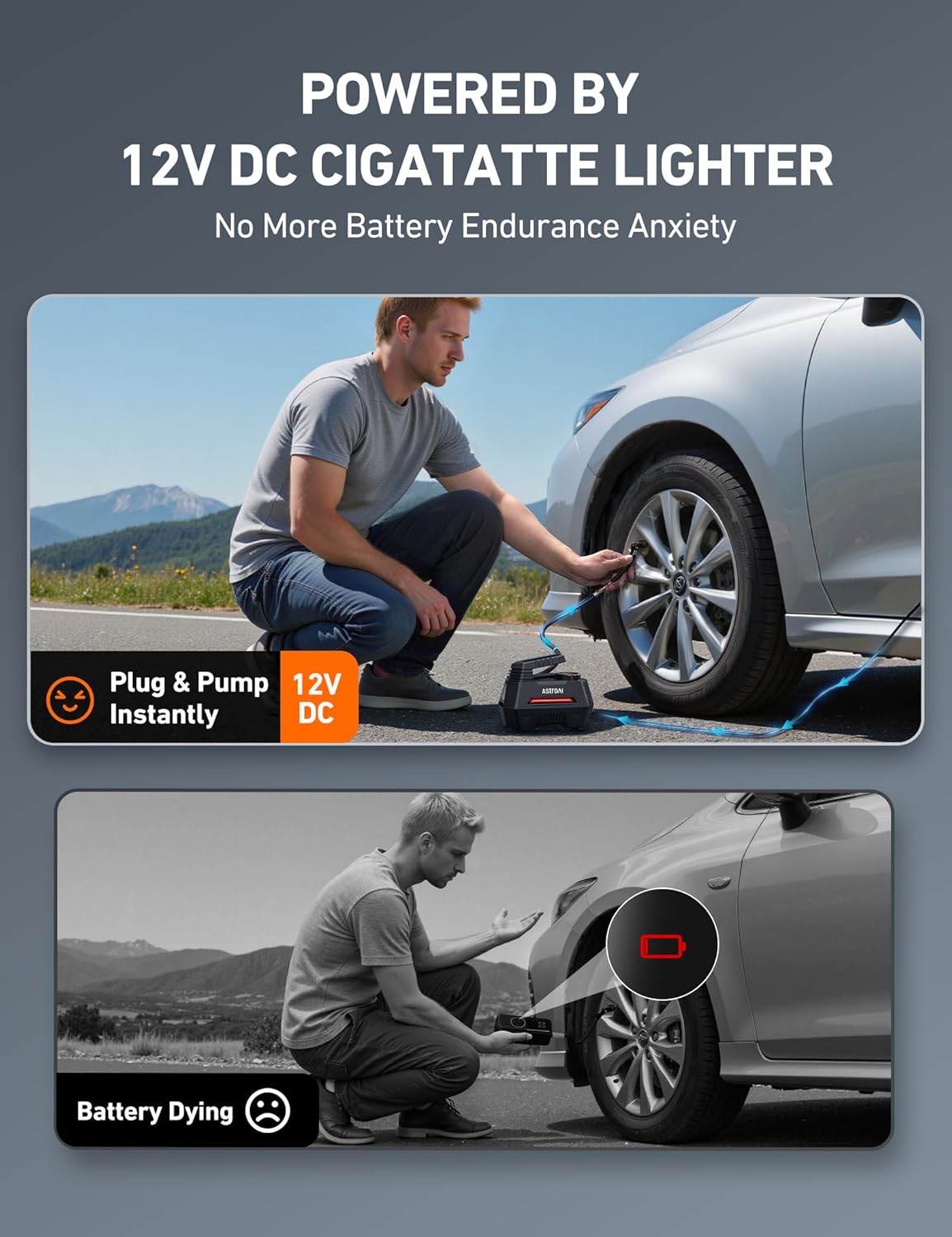 Please note that this product requires a 12V DC cigarette lighter to function properly, and the vehicle must be in a running state. (This product cannot be powered by battery.) It is equipped with a 9.8-foot cord, making it suitable for most regular-sized vehicles.