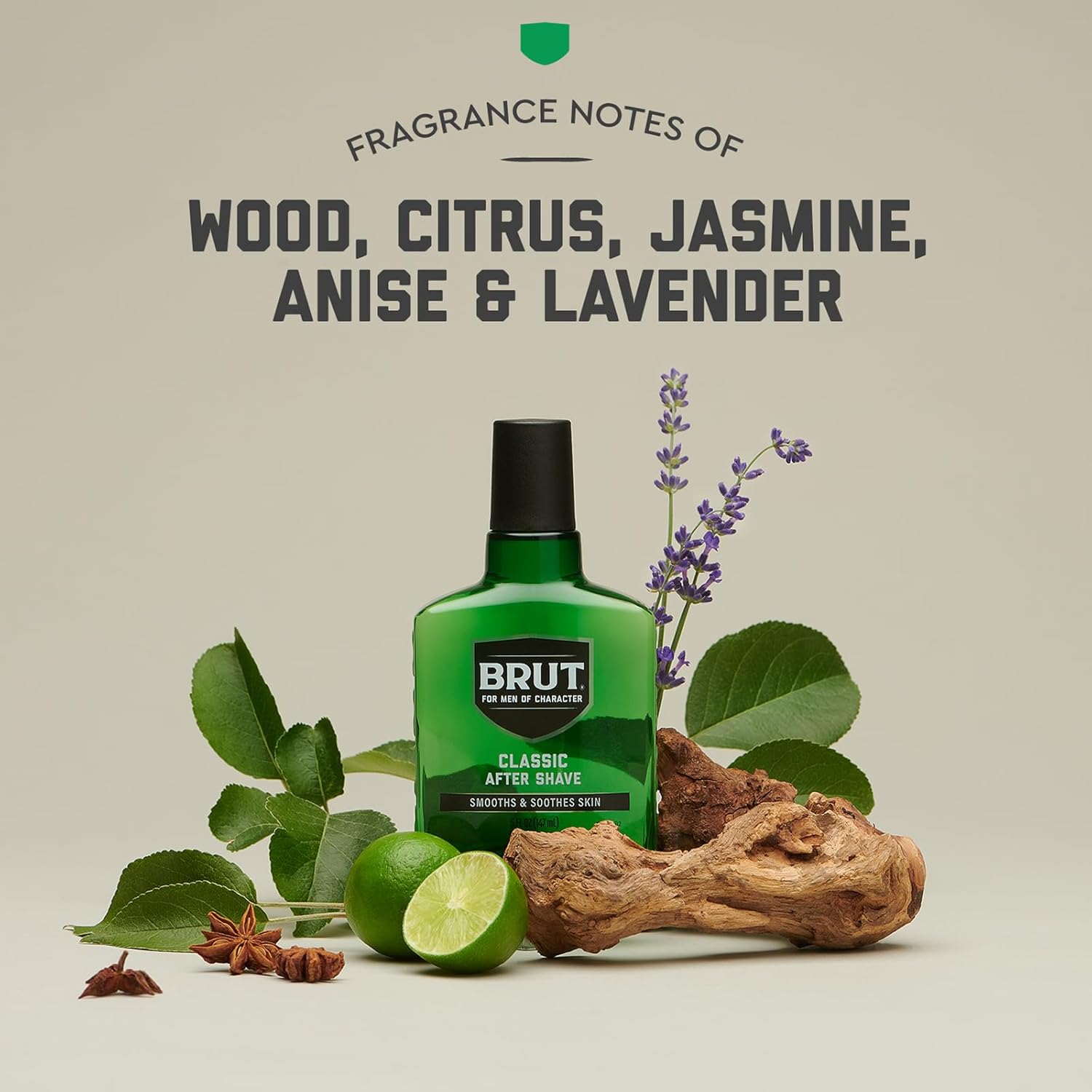 Brut Classic After Shave for Men – Absorbs Quickly to Clean and Tone Skin for a Refreshing Feel – Mens Aftershave with Iconic Masculine Scent – 5 oz