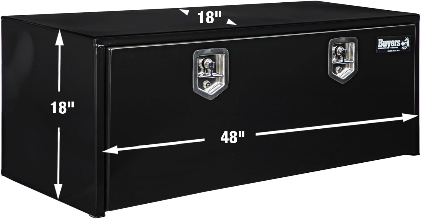 Protect and easily access your equipment with the Buyers Products Black Steel Underbody Truck Box with T-Latch. Each professional grade box is made of strong 14 Ga steel with a 12 Ga drop door that can handle the harshest job sites. Then it’s powder coated black inside and out for superior corrosion resistance and style. The continuous hidden hinge and replaceable gasket system keep weather and grime away from your tools. Aircraft grade cables help prevent damage. The locking, stainless steel compression latch provides a tight seal and deters theft.