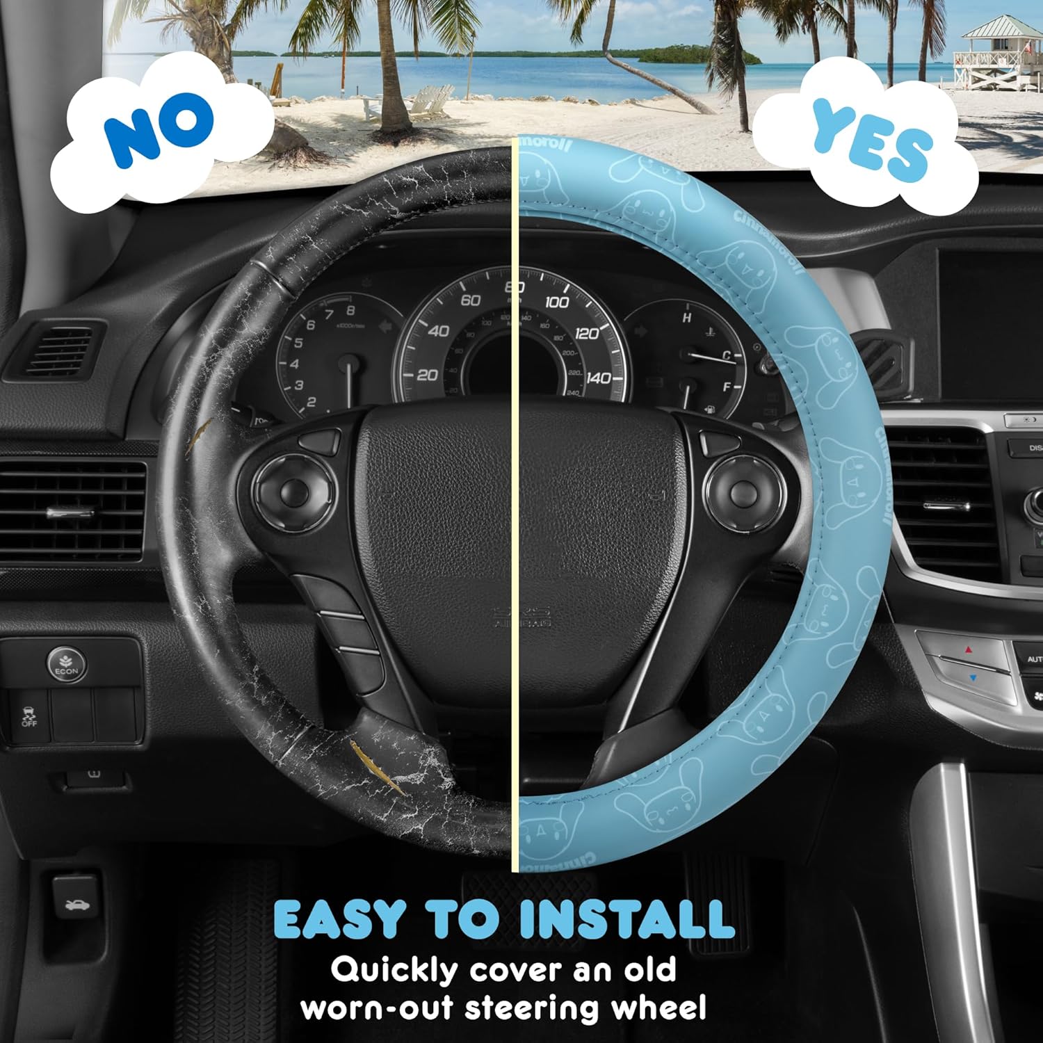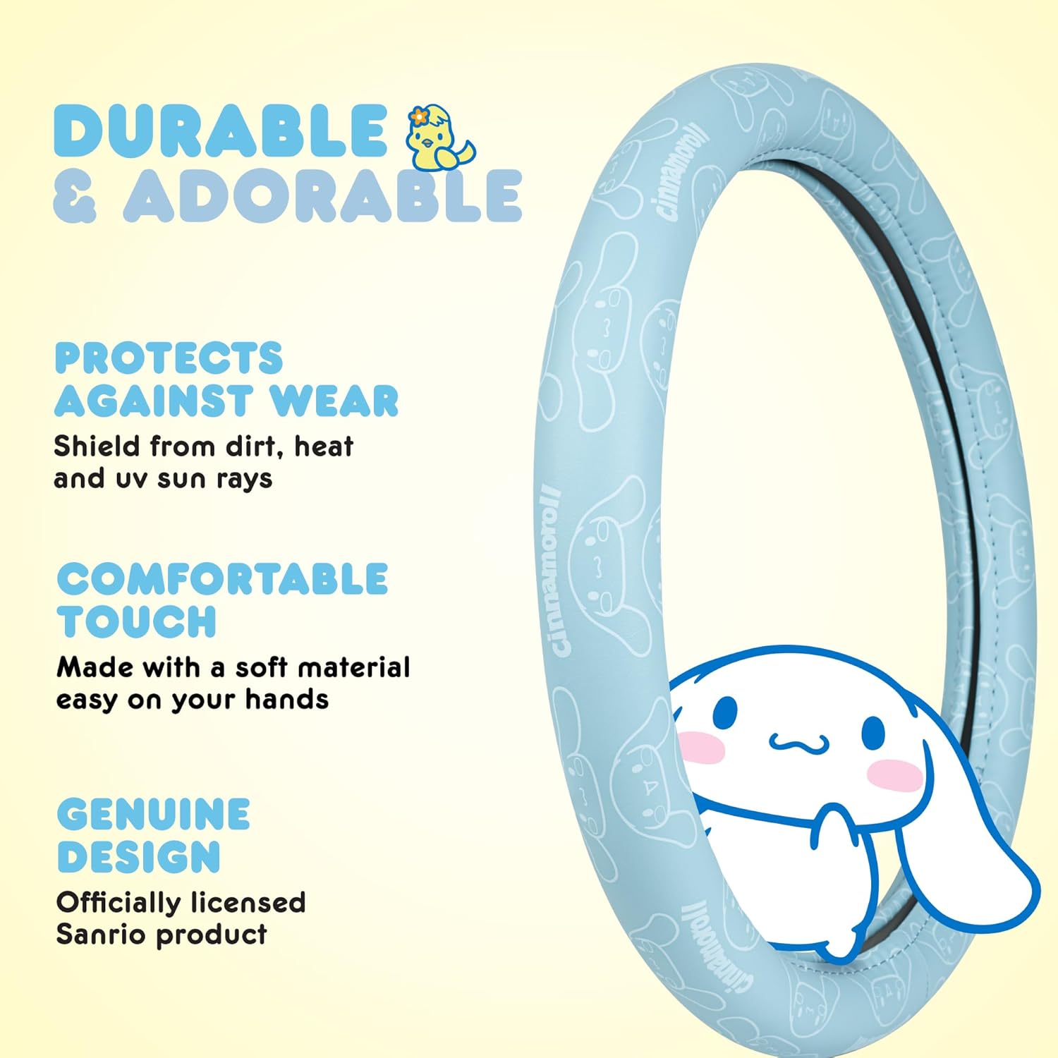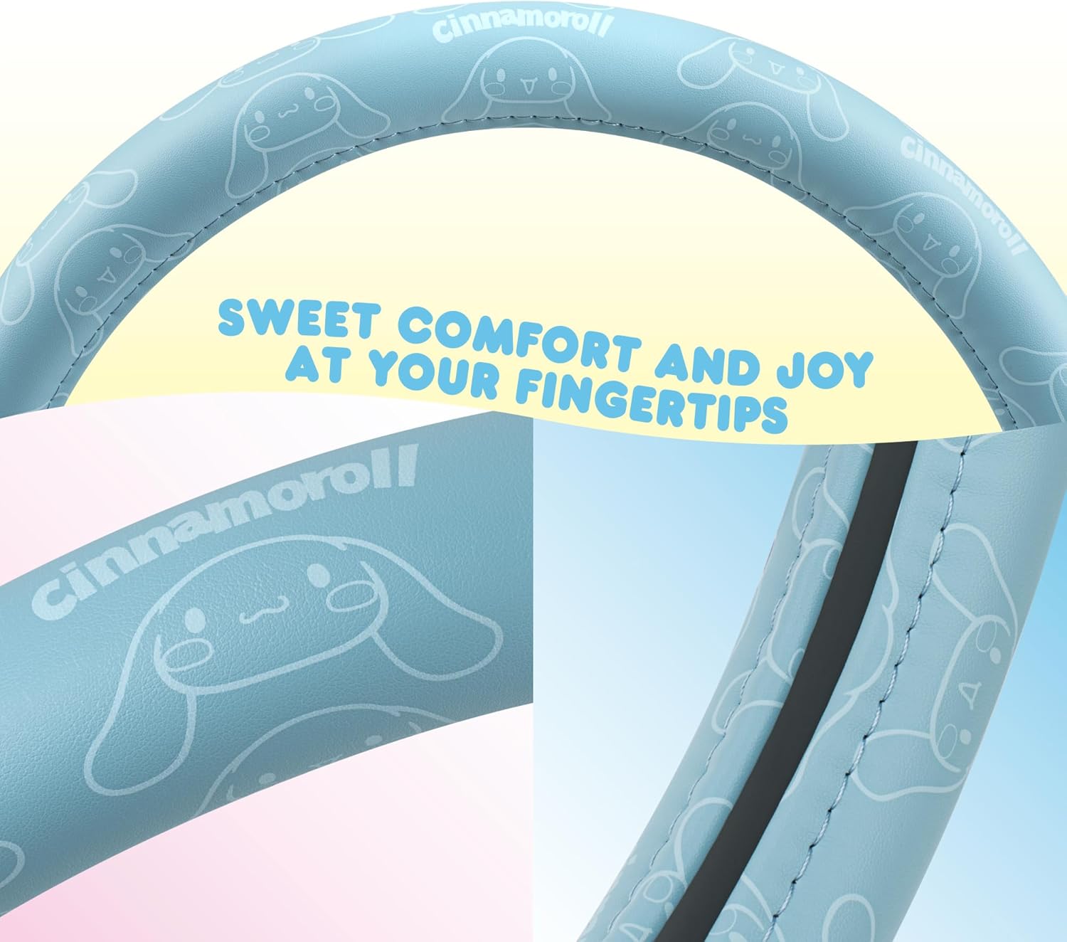 OFFICIAL SANRIO PRODUCT: Show your love for all things kawaii with this officially licensed Cinnamoroll steering wheel cover. Featuring authentic Sanrio branding and the beloved Cinnamoroll character, it’s the perfect accessory for any true fan of the iconic Sanrio universe.