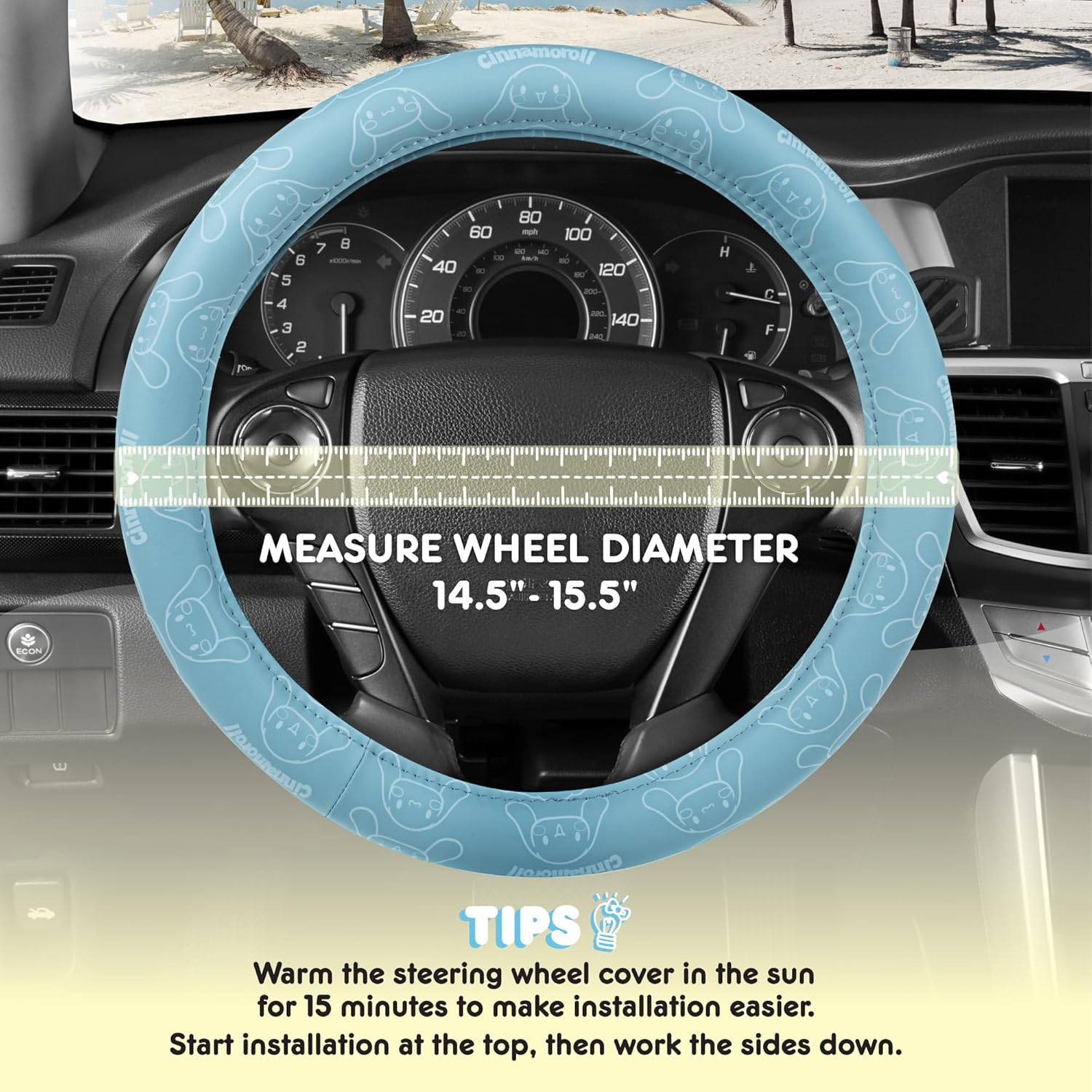 Cinnamoroll Steering Wheel Cover, Official Sanrio Car Steering Wheel Cover with Universal Size 14.5-15.5, Cute Blue for Women, Cinnamoroll Car Accessories (Cinnamoroll Blue Monogram)