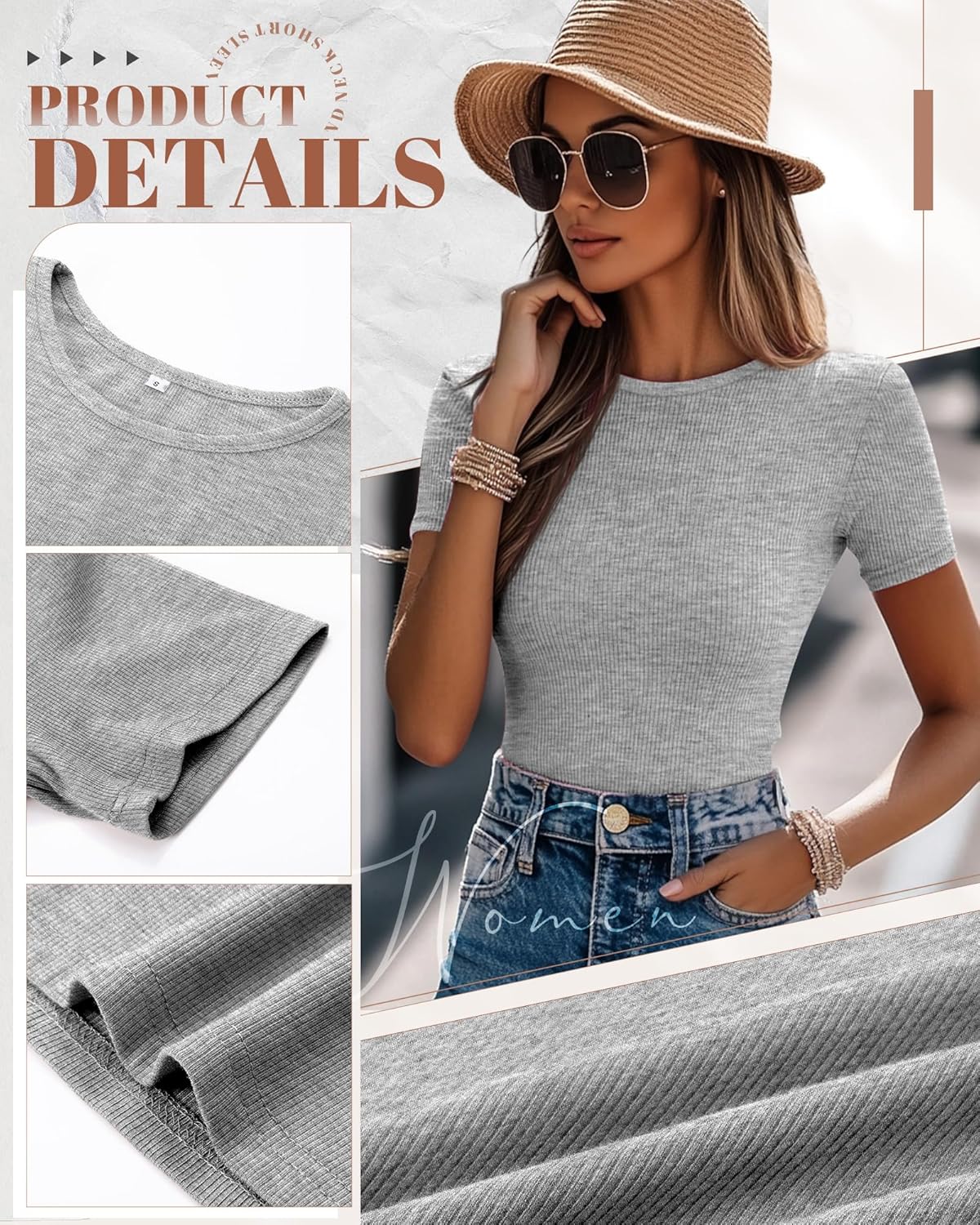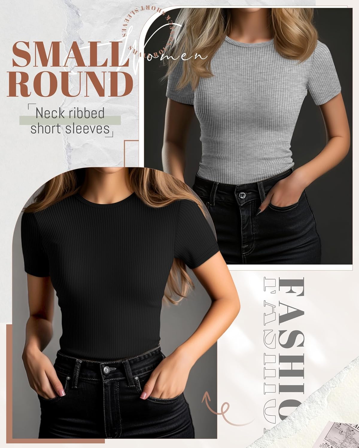 Ficerd 3 Pack Women’s Ribbed T-Shirts, Cotton Short Sleeve Basic Tees Crewneck Fitted Tops Casual Shirts 2025 Summer Trendy