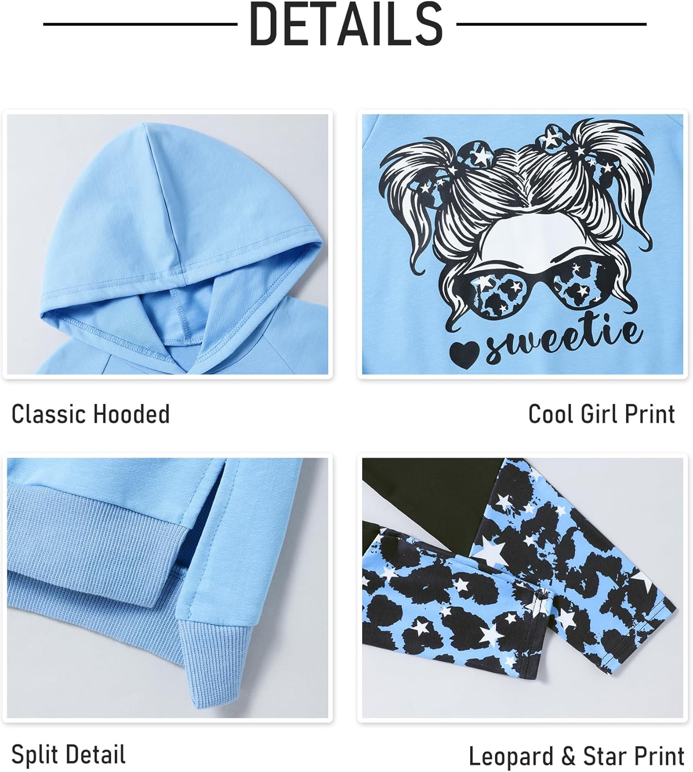 Girls Clothes Cool Girl Print Tie Dye Hoodie Pullover Sweatshirt Leggings 2PC Outfits