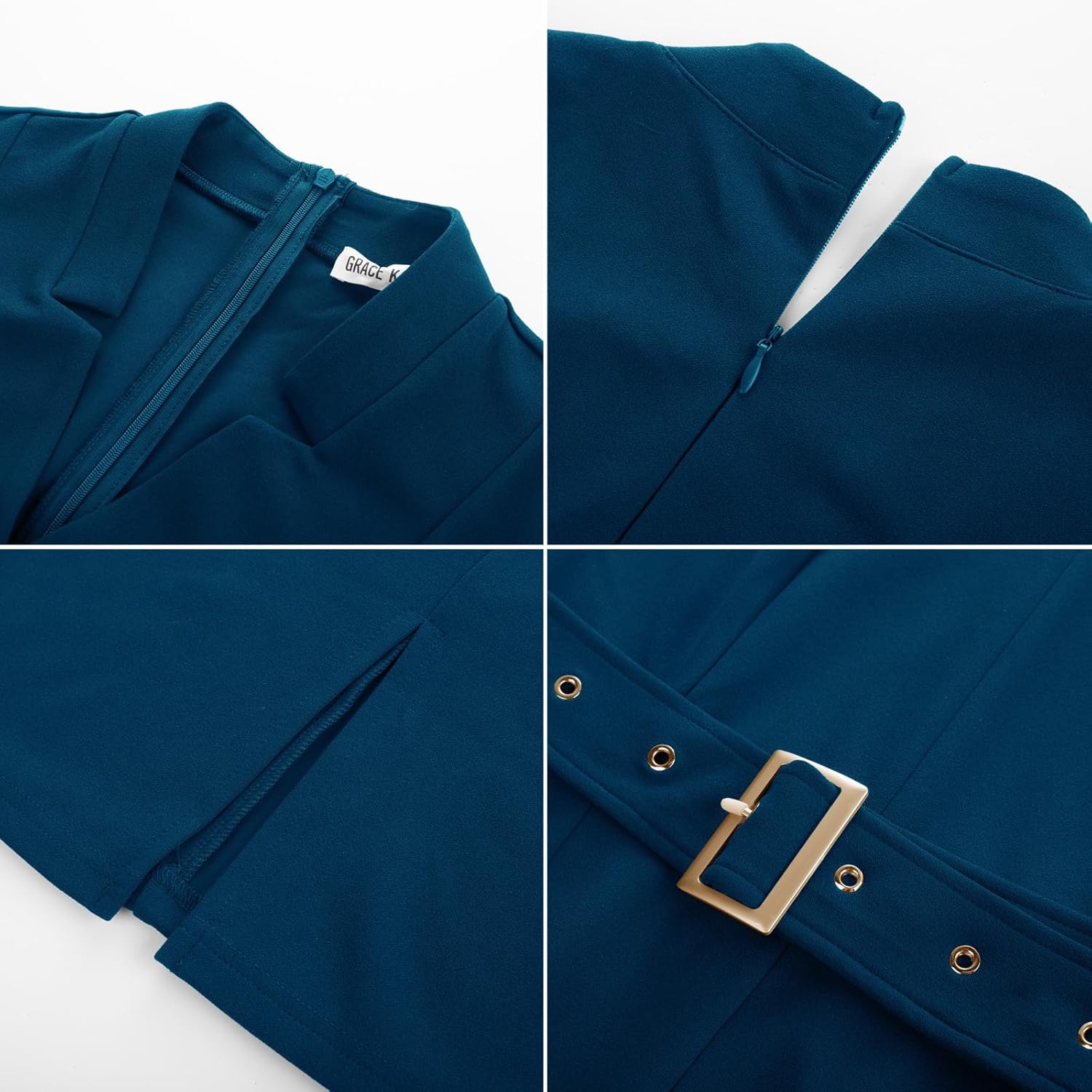 GRACE KARIN Women’s Work Dress 3/4 Sleeve V Neck Bodycon Sheath Dress Zipper Up Office Business Dresses with Belt