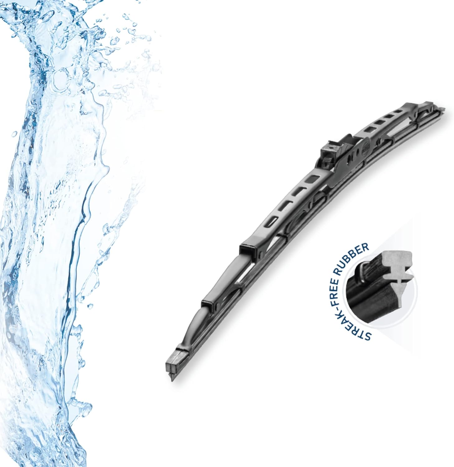 HELLA Standard Wiper Blades are designed with a stainless steel frame for optimum performance in all adverse conditions. The wiper blade features a rubber sheet with graphite coating for one Homogeneous and silent operation, which greatly improves visibility. Its aerodynamic structure allows the pressure of the air currents to be directed downwards, thereby preventing the wiper blade from being lifted by the force of the wind. The easy-to-fit HELLA Standard Wiper Blades feature the EASYCHANGE which allows for an easy replacement of the blade thanks to the included universal adapters. The HELLA Rear Wiper Blades are available for various vehicle types.