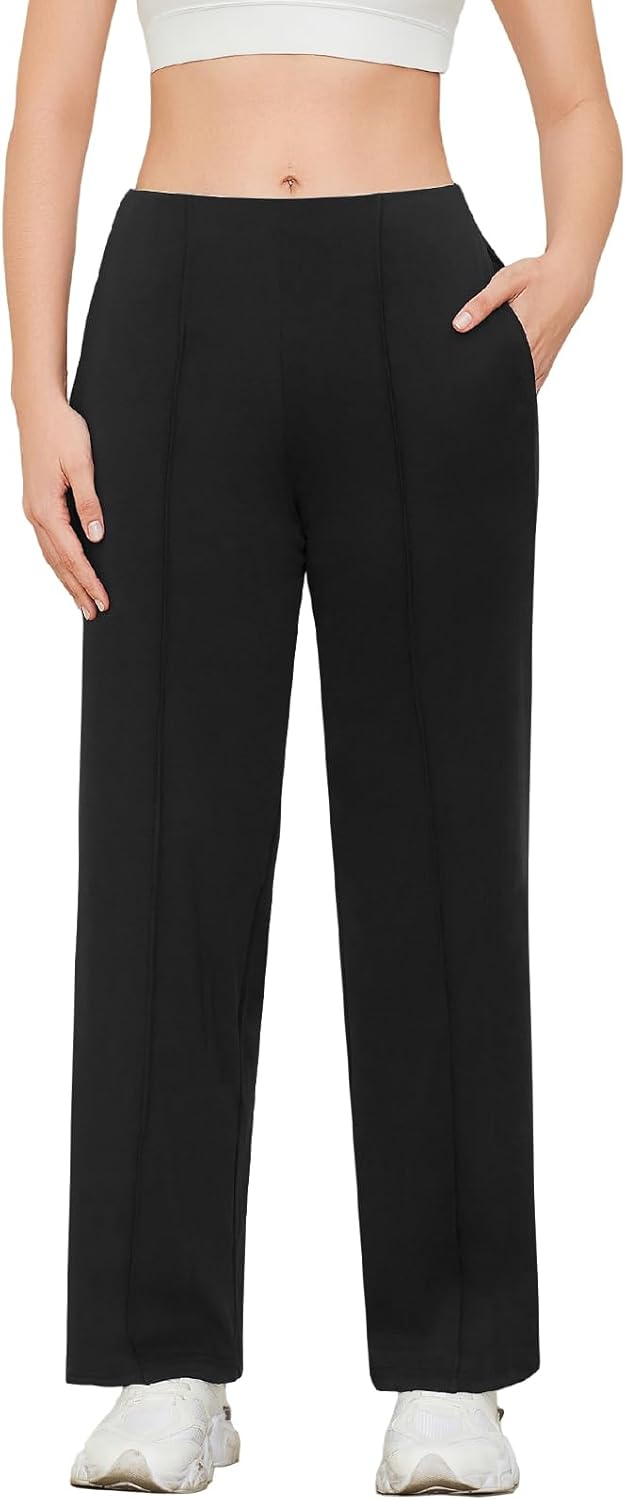 JBT Wide Leg Pants Woman: High Waisted Yoga Pants with Zipple Pockets – Women’s Stretchy Business Petite Trousers