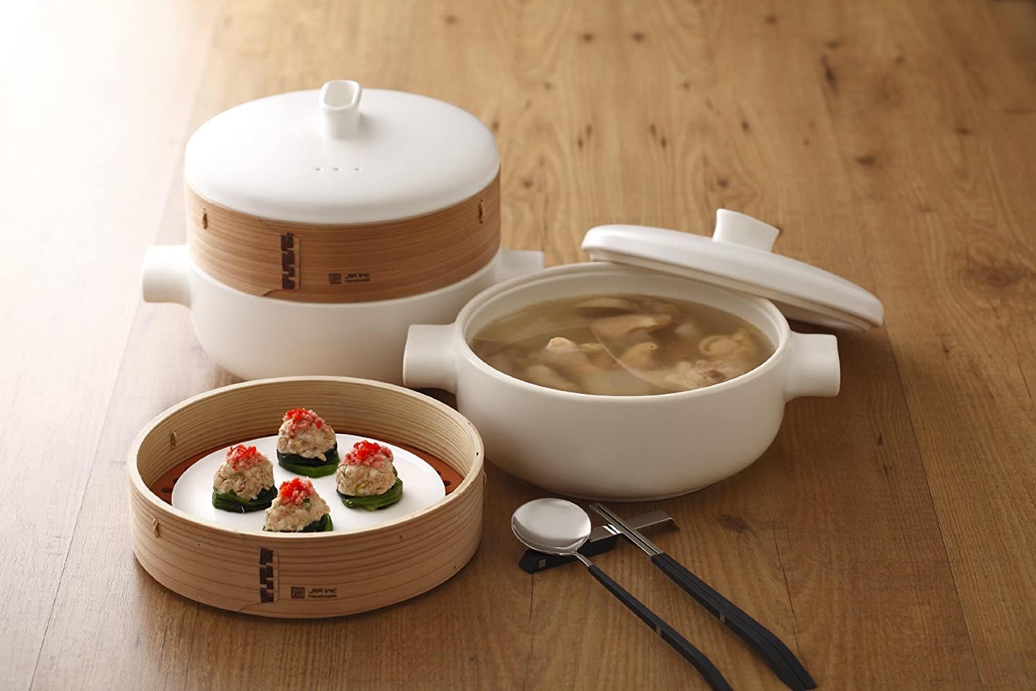 Delicious flavor. Healthy but juicy! A steamed pot experience that was not seen! Excess oil will fall down! But it is moist and juicy. The deliciousness of the PriPriply, Crunchy The steam leaves the texture of the vegetables, locks in the flavor and brings out the sweetness. A steamed pot experience that cannot be enjoyed by a pot. Also great in the kitchen. Just tear your favorite ingredients and place them on the fire. Super easy to use without cutting boards or tableware!