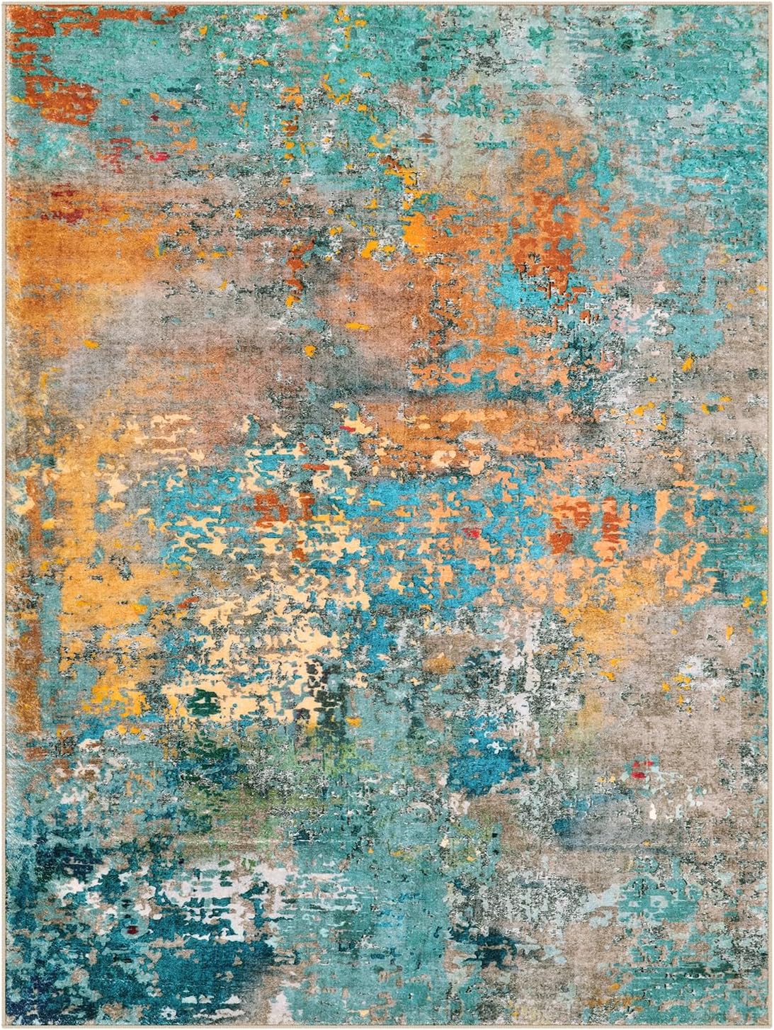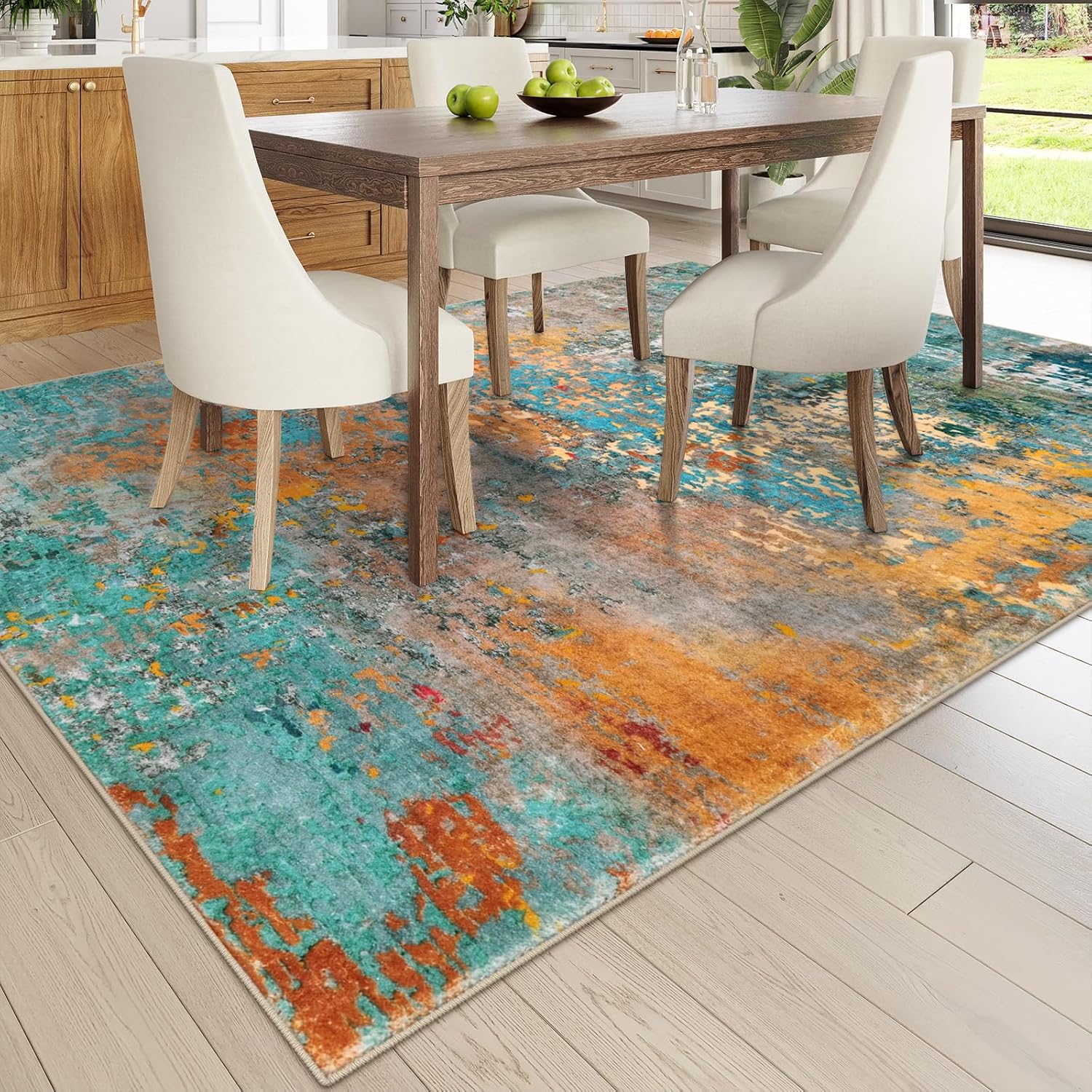 [Modern Abstract Area Rug] – Add a pop of color for you home with this area rug. Designed with delicate palette, this collection impresses with an abstract print with splashes of blue, orange, yellow, and gray hues