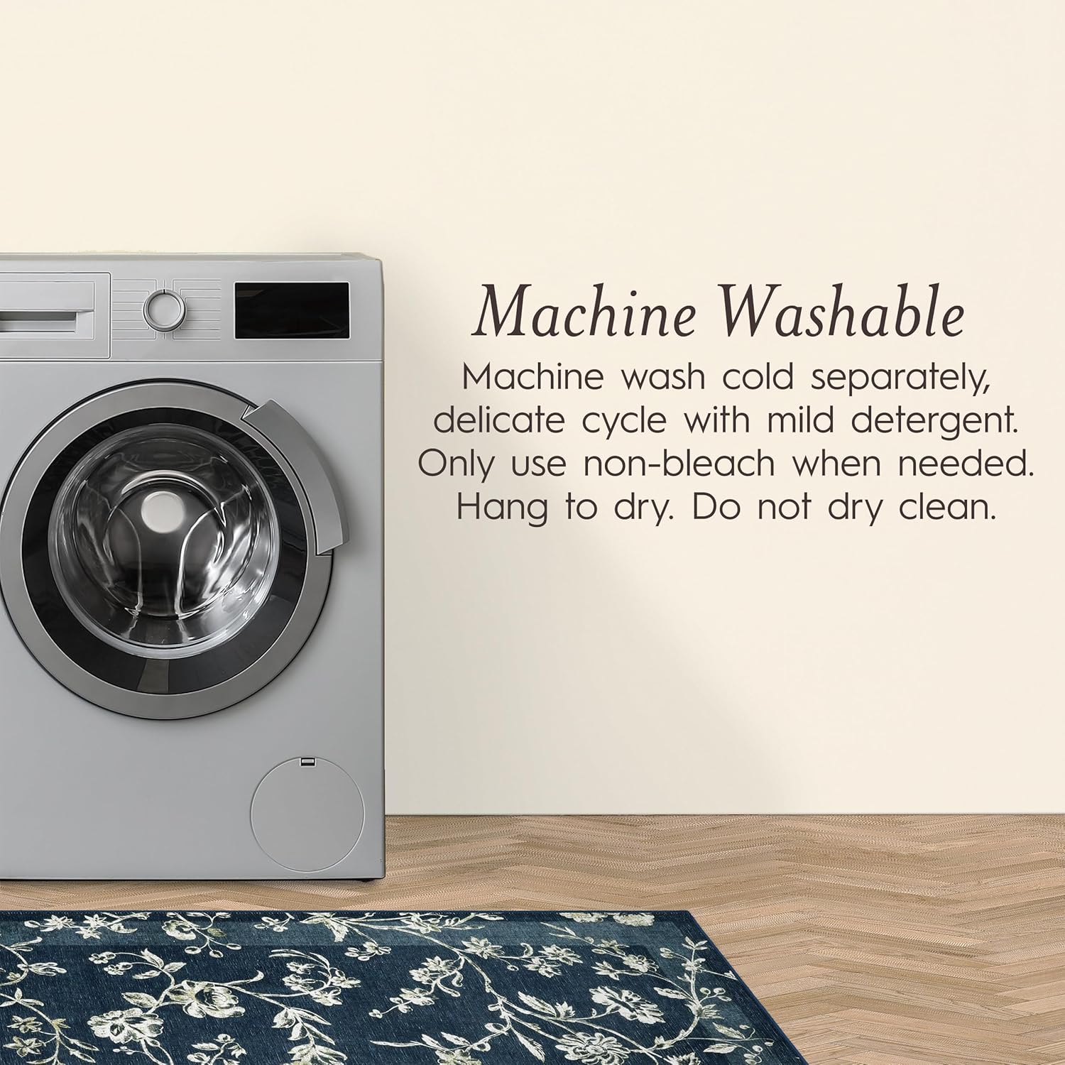 Effortless Maintenance: Keep your space looking fresh effortlessly with our machine washable rug. No need for professional cleaning – simply toss it in the washing machine for a quick and easy clean.