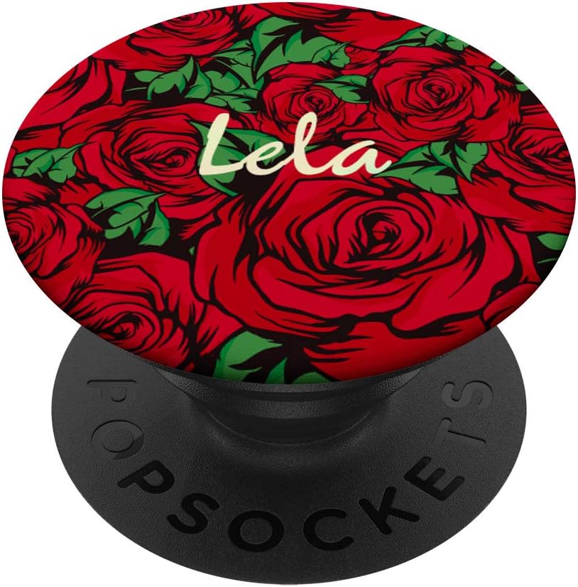 Lela – Floral Red Roses Personalized First Name PopSockets PopGrip: Swappable Grip for Phones & Tablets
