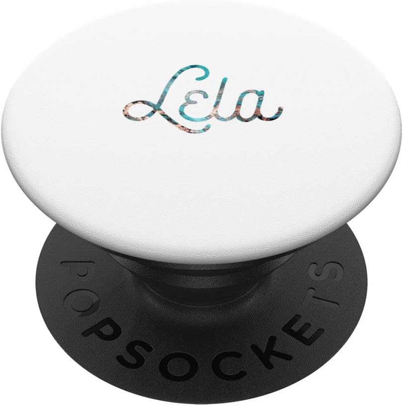Elegant and chic white minimalist design with the name Lela in trendy turquoise rose calligraphy lettering, mobile phone accessory for her