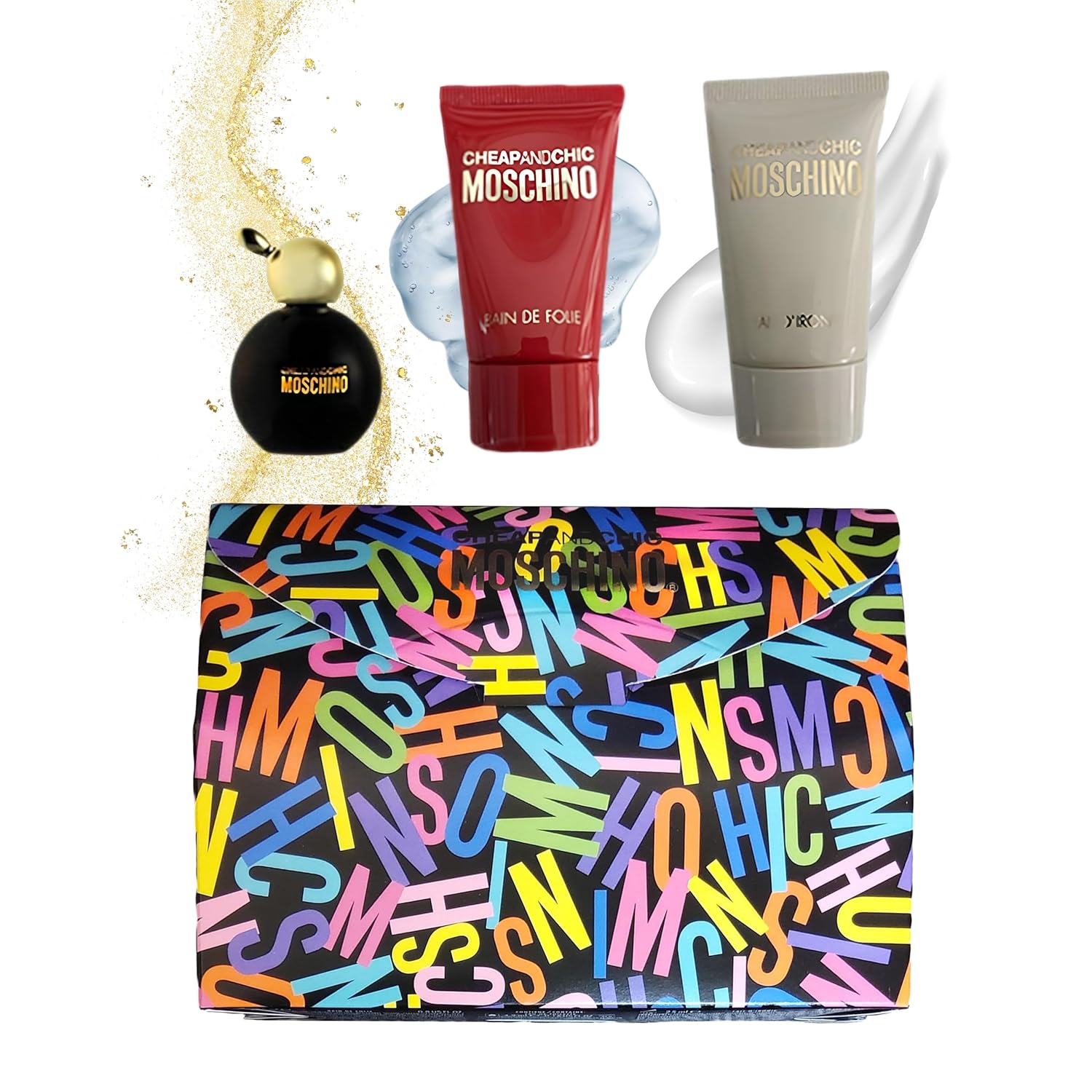 Experience the whimsical charm of Moschino Cheap and Chic with this delightful Mini Perfume Sampler Set. Perfect for gifting or personal indulgence, this set includes: Moschino Cheap and Chic Eau de Toilette (0.16 fluid ounce): A playful, feminine fragrance with fresh, floral notes that captivate and delight. Mini Perfumed Lotion (0.8 fluid ounce): A luxurious lotion that hydrates your skin while leaving behind a light, refreshing scent of the Cheap and Chic fragrance. Mini Perfumed Bath Gel (0.8 fluid ounce): A gently cleansing bath gel that pampers your skin, infusing it with the signature scent of Cheap and Chic. This compact and travel-friendly women’s fragrance gift set is perfect for those who want to explore the timeless elegance and fun of Moschino in miniature form.