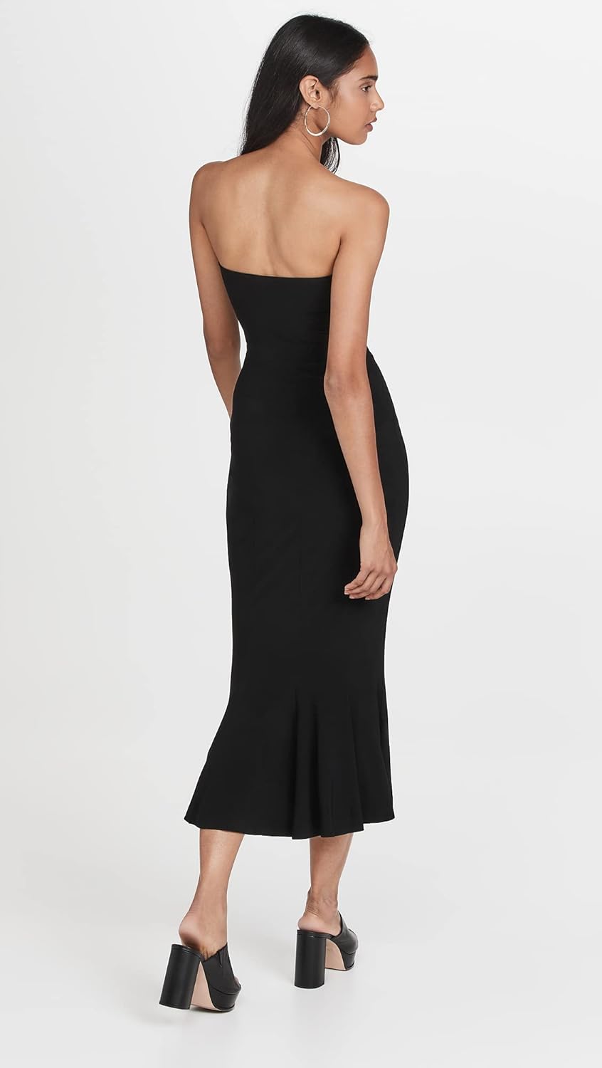 The Strapless fishtail dress to mid- calf is great option for day to night! It can be worn under our single breasted jacket during the day, and transition without to night!