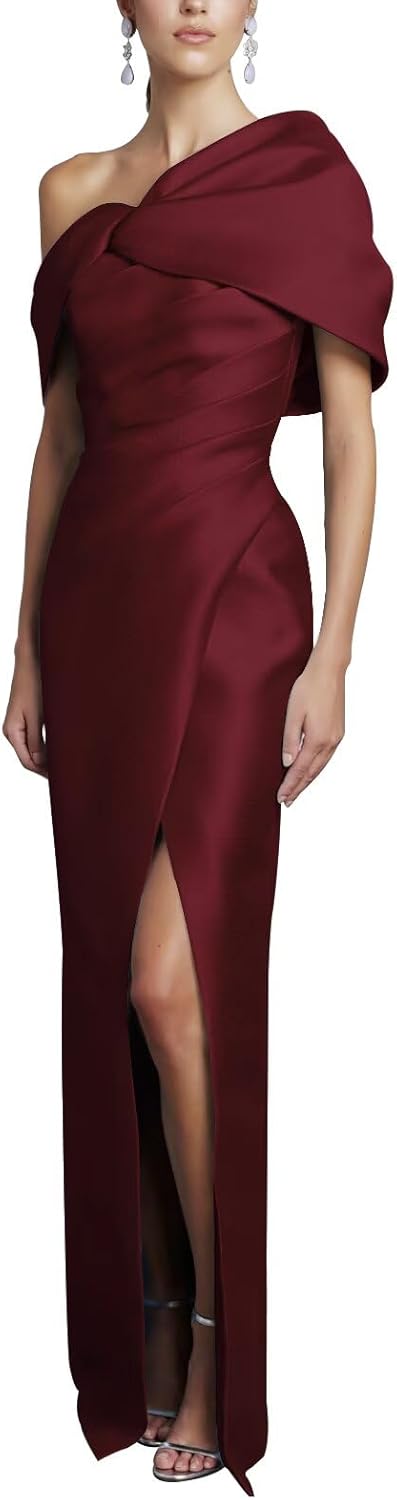 Elegant One Shoulder Mother of The Bride Dresses Long with Sleeves Formal Gowns