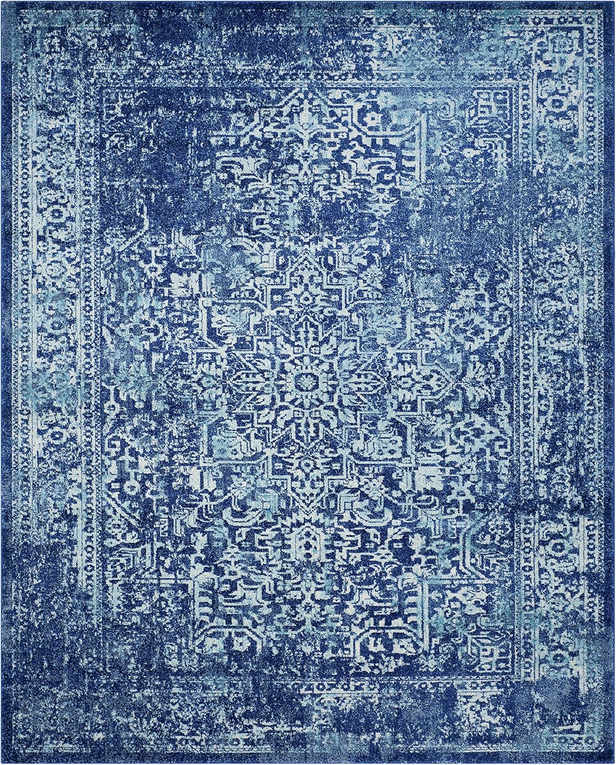 SAFAVIEH Area Rug 8×10 – Evoke Collection – Large – Navy & Ivory, Oriental Distressed Design, Non-Shedding & Easy Cleaning, Ideal for Living Room, Bedroom, Office, Dining Space (EVK256A)
