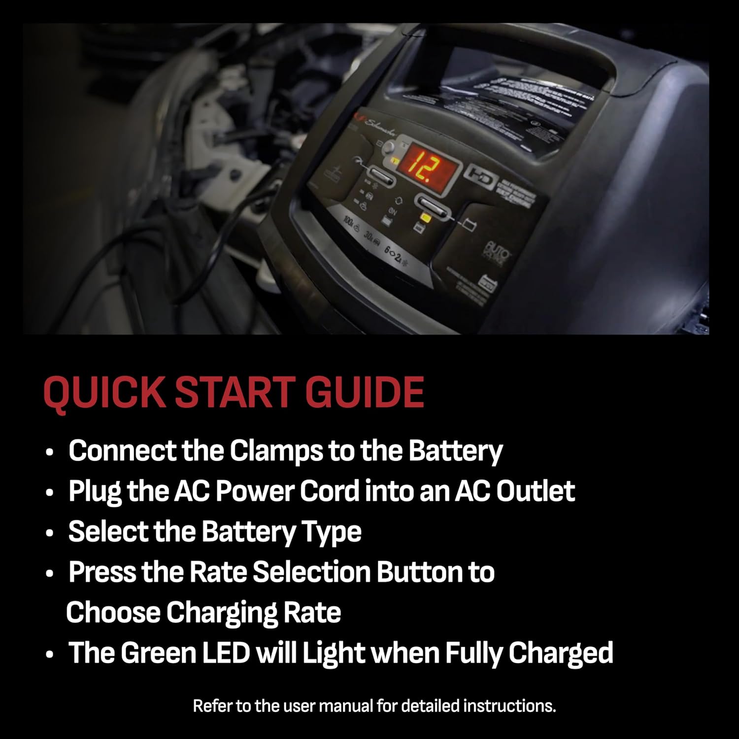 Complete Package – Includes (1) SC1308 Fully Automatic Battery Charger and Engine Starter, (1) user manual