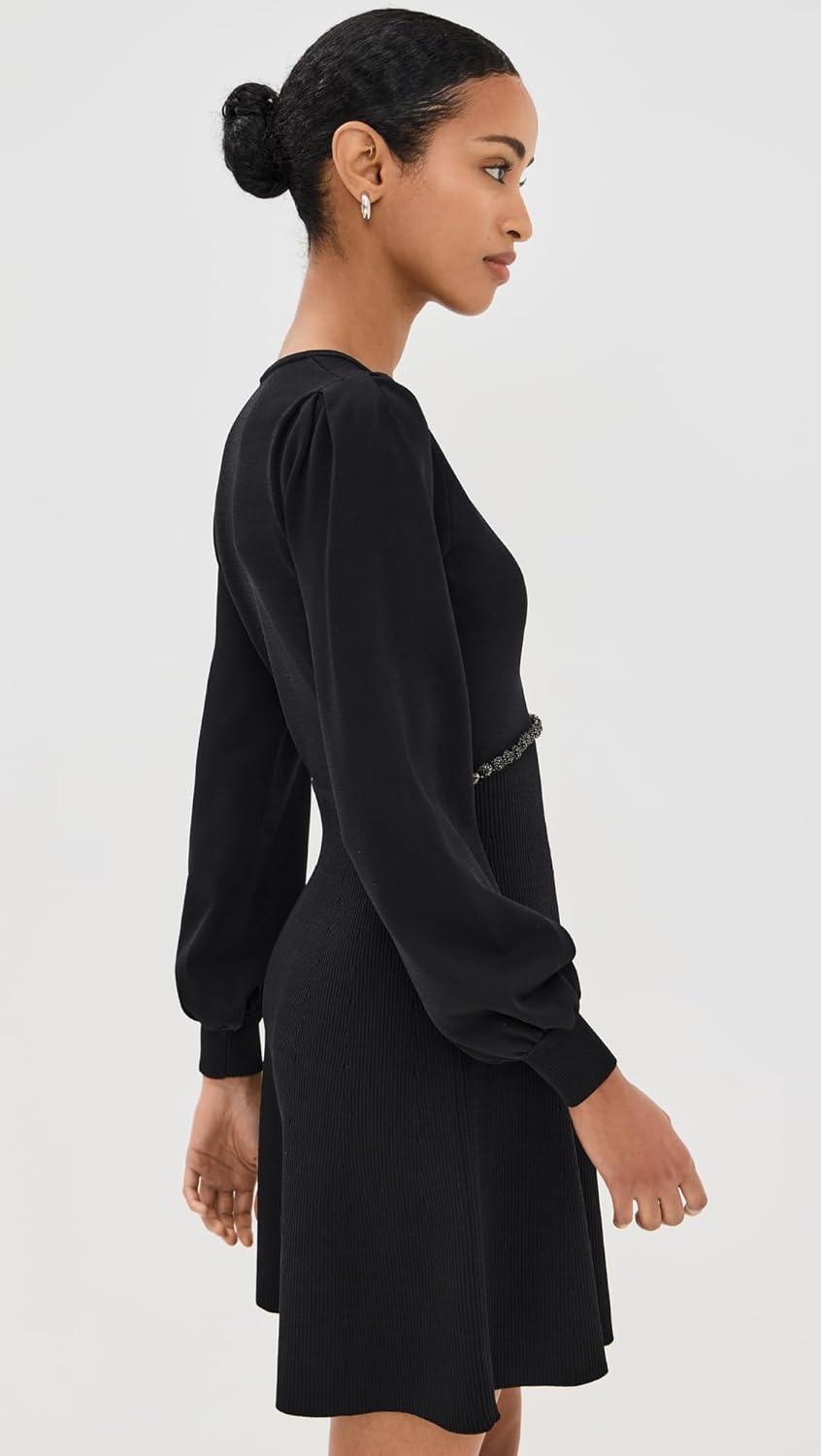 Shoshanna’s winter collection features the Billie dress in this season’s slinky courcheval knit fabrication, including subtle embellishment at the front waist to give this classic a-line silhouette a touch of whimsy.